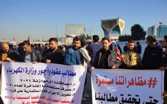 تظاهر مئات الموظفين بنظام العقود مع وزارة الكهرباء، الإثنين، وسط بغداد مطالبين الحكومة والبرلمان بدفع رواتبهم المتأخرة منذ أبريل/ نيسان 2020. واحتشد المتظاهرون أمام أحد مداخل المنطقة الخضراء وسط...